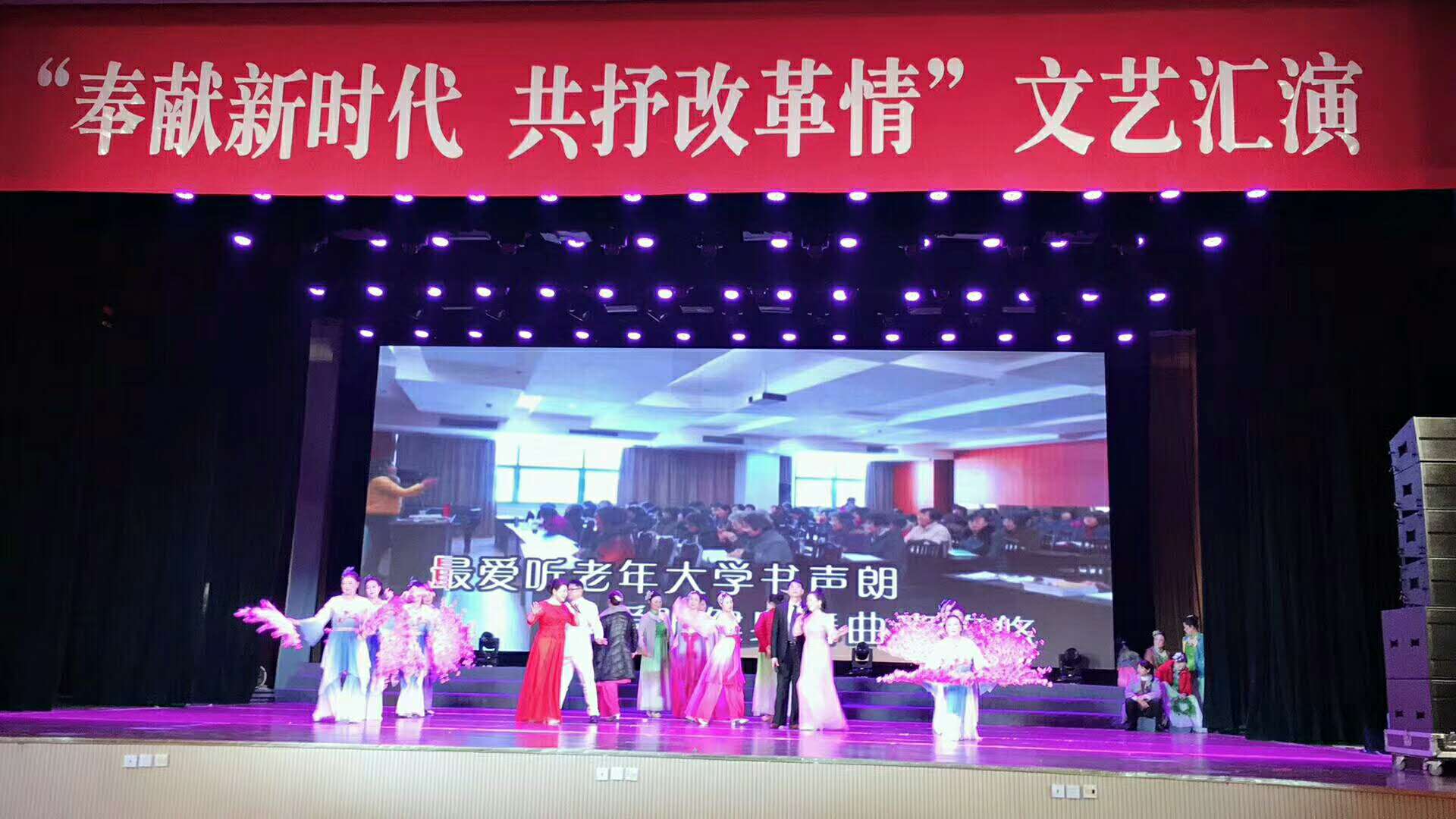 12月18日,在我县大剧院举办的“奉献新时代,共抒改革情”泗阳县离退休干部庆祝改革开放40周年文艺演出活动,我校艺术团进行专场演出。市委组织部副部长、市委老干部局局长、离退休干部工委书记朱广宏,县委书记徐勤忠,县人大常委会主任王业珍,县政协主席郑干先,县委常委、组织部部长张大江以及全县离退休老干部代表,县各部委办局分管领导等600余人观看演出。