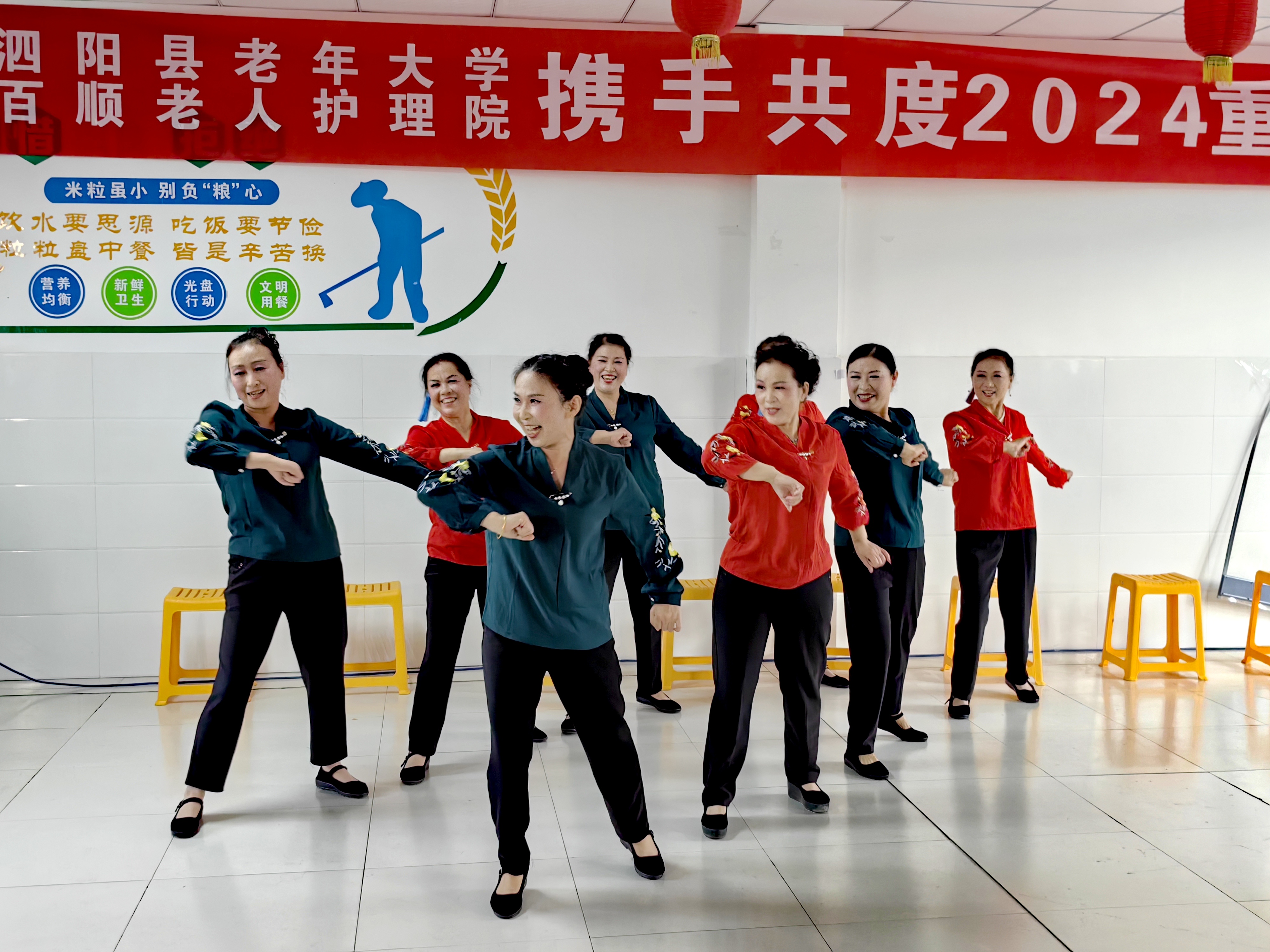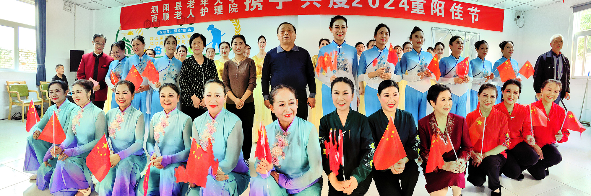 2024年10月11日,值重阳节之际,泗阳县老年大学艺术团走进桃果园百顺老人护理院,为这里的老人们带来了一场精彩纷呈的慰问演出,共同度过了一个温馨、欢乐的重阳佳节。